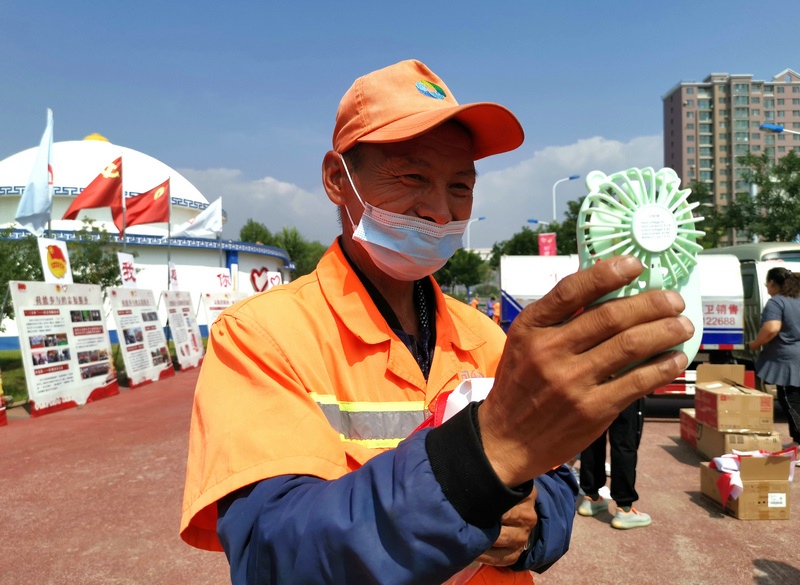 “這么熱的天氣,能給我們環(huán)衛(wèi)工人送來清涼包,太感謝了!”在呼和浩特回民區(qū)成吉思汗大街環(huán)衛(wèi)所做環(huán)衛(wèi)工作的張有義難掩高興的心情,立即打開清涼包中的小電風(fēng)扇,給自己先“清涼”一下。除了風(fēng)扇外,還有可在酷暑夏日為環(huán)衛(wèi)工人們提神醒腦的清涼油,以及可為他們在勞動后第一時間保持手部衛(wèi)生的免洗洗手液,這些貼心的隨身用品無疑是在這個季節(jié)里對他們健康的最好關(guān)愛。