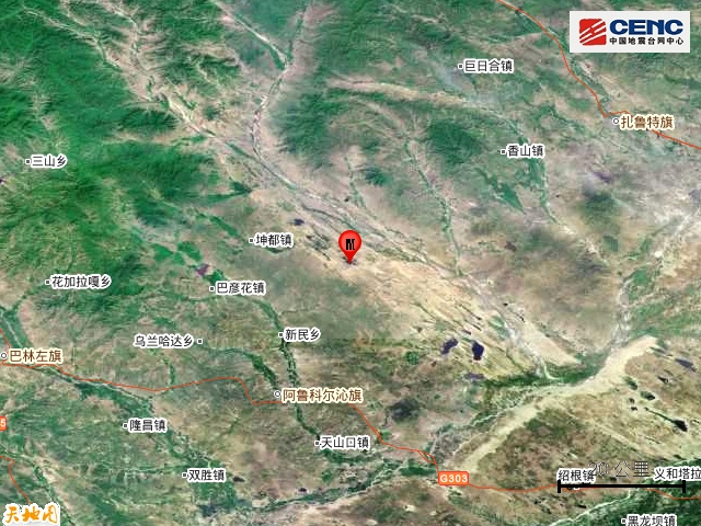 15日5時10分,在赤峰市阿魯科爾沁旗(北緯44.2度,東經(jīng)120.24度)發(fā)生4.7級地震。(圖片來自中國地震臺網(wǎng)中心)
