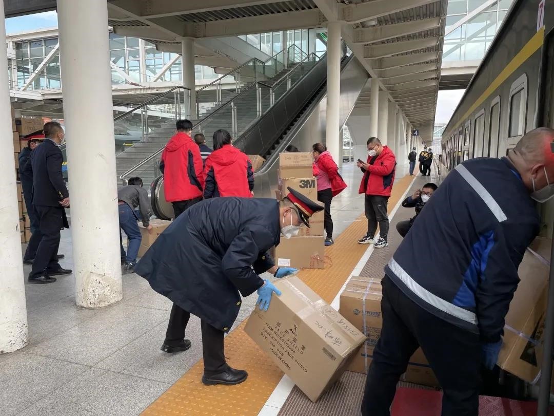 為保障防疫物資裝車效率,呼和浩特貨運中心緊急組織28名青年志愿者,協(xié)助完成專列防疫物資搶運任務。