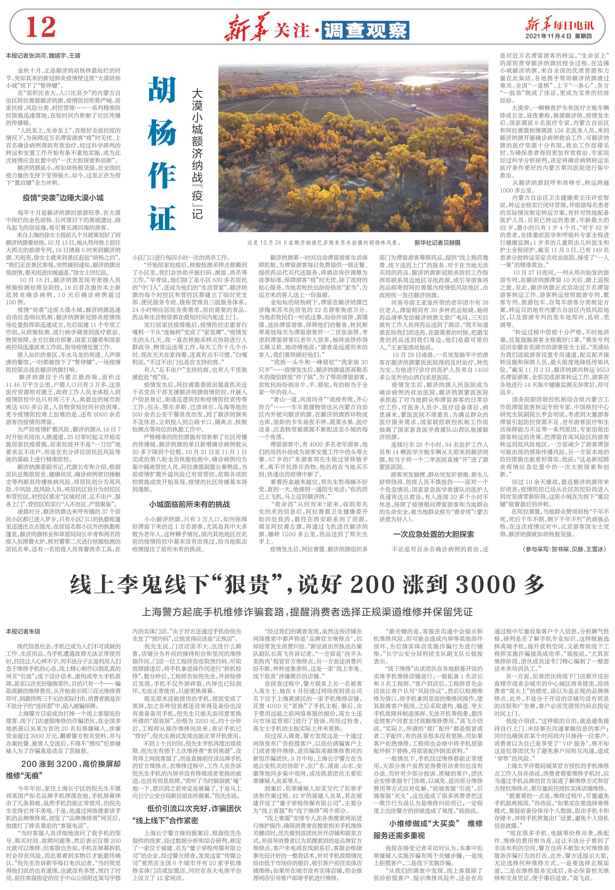 在阿拉善盟,當(dāng)?shù)厝罕娰濏灪鷹睢扒瓴凰?,死后千年不倒,倒下千年不朽”的頑強品格。在這次疫情應(yīng)對中,北京游客國女士覺得,額濟納旗就如胡楊般堅強。