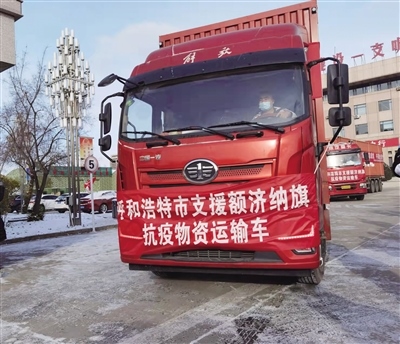 鑒于額濟(jì)納旗疫情防控任務(wù)依然艱巨、醫(yī)療物資用量仍然很大,呼和浩特市新冠病毒疫情聯(lián)防聯(lián)控暨新冠病毒疫情防控工作指揮部決定立即捐贈(zèng)第一批價(jià)值300萬元的防疫物資。在呼和浩特市新冠病毒疫情聯(lián)防聯(lián)控暨新冠病毒疫情防控工作指揮部的統(tǒng)籌部署下,指揮部物資保障組成員單位市財(cái)政局、發(fā)改委、衛(wèi)健委、商務(wù)局、交通局、紅十字會(huì)全力以赴、齊心協(xié)力,愛心企業(yè)、金融機(jī)構(gòu)積極捐贈(zèng),呼和浩特警備區(qū)傾力相助,讓愛心“大禮包”如期發(fā)貨。在發(fā)車現(xiàn)場,中國銀行股份有限公司內(nèi)蒙古自治區(qū)分行辦公室主任葛華表示,面對疫情,中國銀行內(nèi)蒙古分行支援抗疫責(zé)無旁貸,重任在肩必須挺身,義無反顧地與全區(qū)人民站在一起,守望相助、同心戰(zhàn)“疫”、共克時(shí)艱,在積極做好疫情防控和金融服務(wù)的同時(shí),主動(dòng)擔(dān)當(dāng)責(zé)任,通過紅十字會(huì)向呼和浩特市、阿拉善盟、二連浩特市捐款近百萬元,為地方開展疫情防控盡一份綿薄之力。金宇生物技術(shù)股份有限公司黨委副書記張占福告訴記者:“疫情無情,人間有愛。作為動(dòng)物疫苗生產(chǎn)企業(yè),能為我區(qū)抗擊疫情出一份力,奉獻(xiàn)一份愛,是企業(yè)應(yīng)盡的社會(huì)責(zé)任和義務(wù)?!痹诠部挂咔榈年P(guān)鍵時(shí)刻,內(nèi)蒙古顯鴻科技股份有限公司積極響應(yīng)市政府號召,在做好企業(yè)疫情防控的同時(shí),第一時(shí)間組織抗疫物資,用實(shí)際行動(dòng)踐行顯鴻科技“愛黨、愛國、愛企、愛家”情懷。短短幾天時(shí)間內(nèi),伊利、蒙牛、盛健、華訊等18家企業(yè)進(jìn)行愛心捐贈(zèng),大家同心同德、同向同行,堅(jiān)決助力自治區(qū)打贏這場疫情防控阻擊戰(zhàn)。