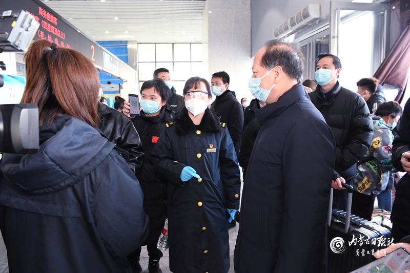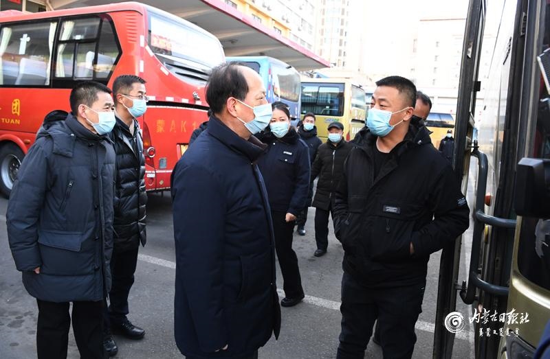 節(jié)假日期間人員流動增加,做好疫情防控和交通出行保障非常重要。石泰峰來到呼和浩特火車站、長途汽車站,看望慰問一線工作人員,實地了解各項措施落實情況。通過車站自助驗證通道后,石泰峰首先來到售票處,詢問旅客購票和出行情況,叮囑車站工作人員在節(jié)假日期間要實行網(wǎng)上預(yù)約購票,避免人員聚集。在進站口,石泰峰看到旅客掃碼后還需人工查驗結(jié)果,他強調(diào),要優(yōu)化售票檢票等服務(wù)流程,充分運用技術(shù)手段改進旅客進站檢查方式,切實堵塞工作漏洞。要嚴謹細致做好進站測溫、驗碼等防疫檢查,嚴格控制、科學(xué)調(diào)節(jié)客流量。要加強規(guī)范佩戴口罩、保持安全距離等防范措施提醒,引導(dǎo)旅客做好個人防護。在汽車站停車場,石泰峰與司乘人員交談,深入了解車輛消殺、信息登記等情況。隨后,他乘坐地鐵2號線,調(diào)研疫情防控和市民出行情況。他強調(diào),要嚴格落實常態(tài)化交通運輸疫情防控要求,認真落實客運場站和交通運輸工具消毒通風(fēng)、設(shè)置隔離區(qū)等措施,加強客運一線服務(wù)人員日常健康監(jiān)測和定期核酸檢測,制定應(yīng)急預(yù)案,完善相關(guān)設(shè)施,讓群眾出行更加安全順暢舒心。