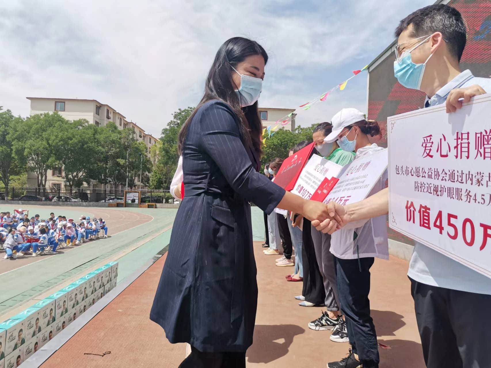 同時(shí),自治區(qū)團(tuán)委、內(nèi)蒙古青基會(huì)以及愛心單位為內(nèi)蒙古農(nóng)業(yè)大學(xué)附屬中學(xué)捐贈(zèng)建設(shè)愛眼小屋和愛眼包以及后期視力防控訓(xùn)練、弱視訓(xùn)練、單光眼鏡和近視防控家長(zhǎng)課堂等項(xiàng)目。