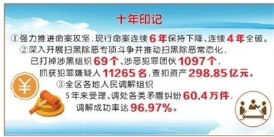 為將矛盾糾紛解決在基層一線,人民調(diào)解組織曉之以理、動(dòng)之以情,化解疑難復(fù)雜案件,有效預(yù)防群體性事件、個(gè)人極端暴力事件和“民轉(zhuǎn)刑、刑轉(zhuǎn)命”案件。5年來,全區(qū)各地人民調(diào)解組織受理、調(diào)處各類矛盾糾紛60.4萬件,調(diào)解成功率達(dá)96.97%,實(shí)現(xiàn)了“案結(jié)事了人和”。