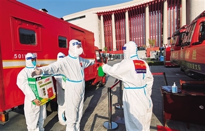 10月20日,在內(nèi)蒙古革命歷史博物館方艙醫(yī)院,呼和浩特市消防救援支隊(duì)消防員正在做個(gè)人消殺。本輪疫情發(fā)生以來,該支隊(duì)累計(jì)執(zhí)行消毒消殺任務(wù)300余次,完成室內(nèi)消殺近15萬平方米、消防安全線上檢查指導(dǎo)近500(家)次,為疫情防控貢獻(xiàn)消防力量。(內(nèi)蒙古日報(bào)社融媒體記者記者 懷特烏勒斯 通訊員 隆雪 攝)