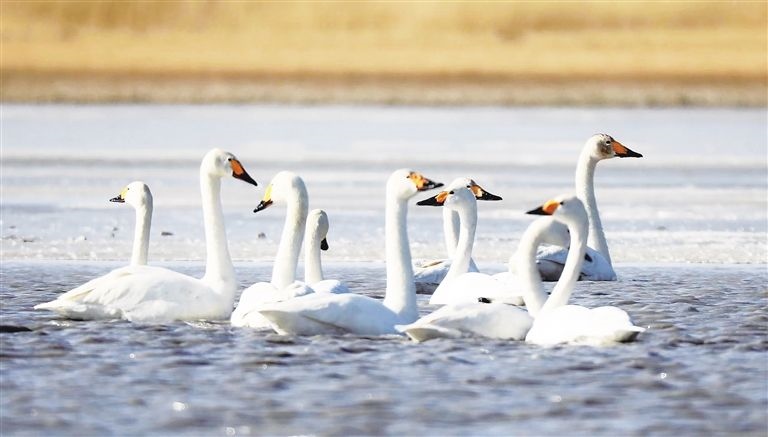 晶晶忍不住感嘆:“我和盈盈每次南飛或北遷,都要在沉湖‘打卡’,這個(gè)城市濕地已變成了小天鵝的‘會(huì)客廳’。前些年,這里可不好玩,用人類(lèi)的話(huà)說(shuō),它‘曾經(jīng)滿(mǎn)目瘡痍,如今萬(wàn)鳥(niǎo)翔集、水草豐美’?!?/p>