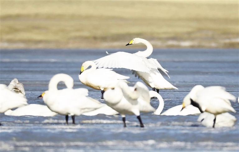 初春時(shí)節(jié),呼倫湖烏蘭諾爾濕地迎來(lái)大批候鳥(niǎo)。內(nèi)蒙古日?qǐng)?bào)社融媒體記者 李新軍攝