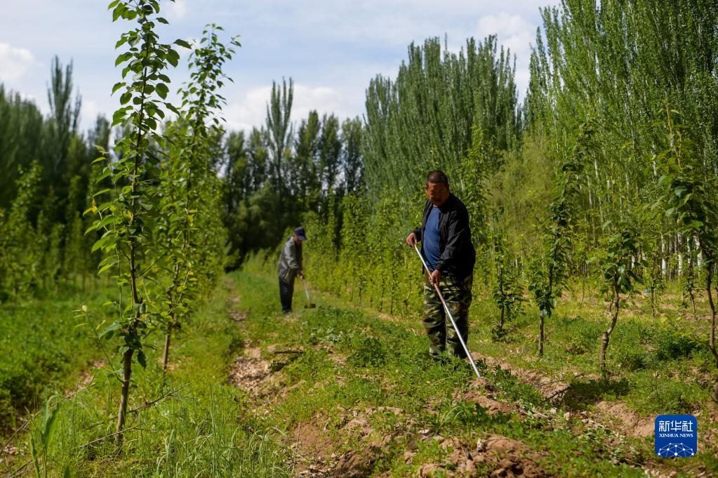 6月5日,臨河區(qū)國營新華林場工人在管護林木。新華社記者 李志鵬 攝
