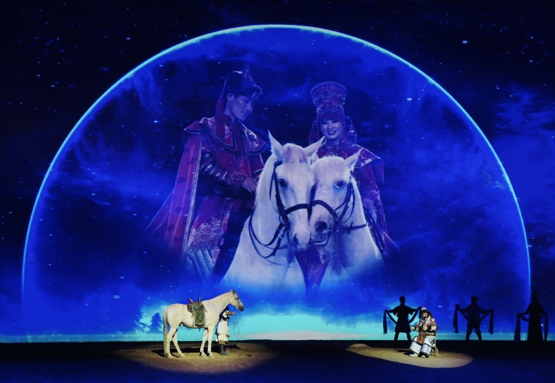 《千古馬頌》既具奪人眼球的觀賞性,又有直指人心的文化內(nèi)涵;既是一項(xiàng)填補(bǔ)內(nèi)蒙古馬文化駐場演出空白的旅游產(chǎn)品,又是一部挖掘蒙古民族與馬深厚情感的藝術(shù)史詩,成為近年來提升內(nèi)蒙古自治區(qū)文化產(chǎn)業(yè)核心競爭力、展現(xiàn)民族融合團(tuán)結(jié)奮斗的一部優(yōu)秀作品。(攝影/內(nèi)蒙古日報(bào)·草原全媒記者郭偉偉)