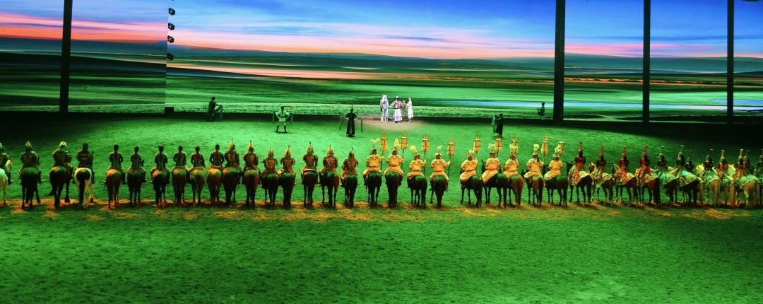 濃墨重彩的林海,遼闊無邊的沙漠,金燦燦的胡楊林,9月的內(nèi)蒙古正是夏季的繁茂與秋季的華彩交融之際,處處斑斕、極致秋色的自然美景,讓人流連忘返。而在呼和浩特市上演著一幕壯闊絕美的獨(dú)特“美景”,讓人充分體會到濃濃的草原風(fēng)情和壯闊的奮斗歷程,這就是經(jīng)典馬舞劇——《千古馬頌》。