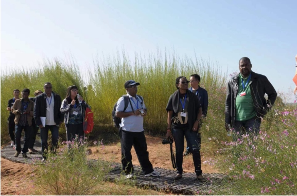 2017年9月,《聯(lián)合國(guó)防治荒漠化公約》第十三次締約方大會(huì)與會(huì)代表觀摩庫(kù)布其生態(tài)建設(shè)現(xiàn)場(chǎng)。