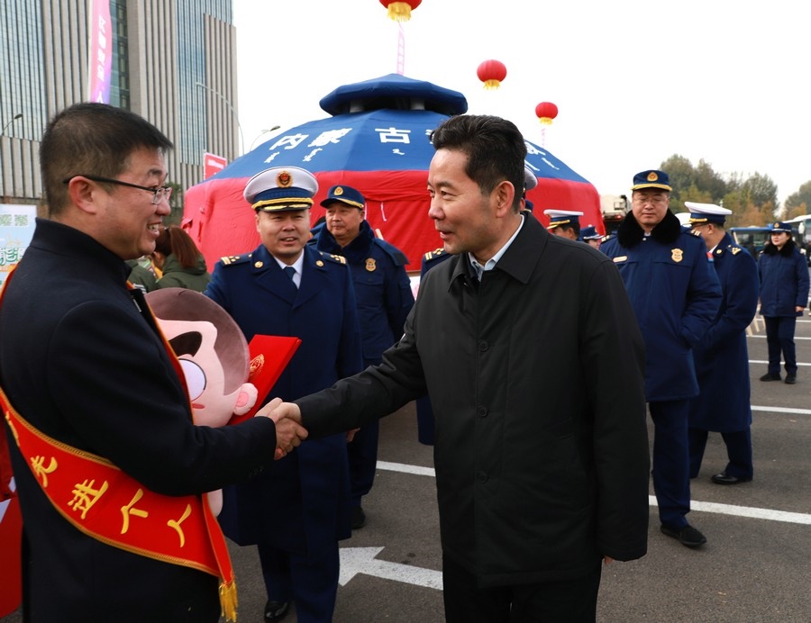 儀式上,內(nèi)蒙古自治區(qū)消防救援總隊(duì)總隊(duì)長李俊豐宣布“2023年度內(nèi)蒙古自治區(qū)消防宣傳月活動啟動”,消防主題公交車、共享單車、外賣車等“流動消防宣傳員”紛紛“上崗”,“消防+燃油”“消防+燃?xì)狻薄跋?用電”“消防+電動車”等主題宣傳集市火熱“開市”,2023年度內(nèi)蒙古自治區(qū)消防宣傳月活動正式拉開帷幕。