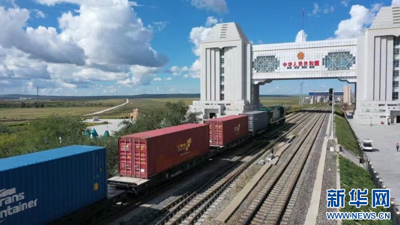 中歐班列駛出滿(mǎn)洲里國(guó)門(mén)。新華網(wǎng)發(fā) (李新軍 攝)