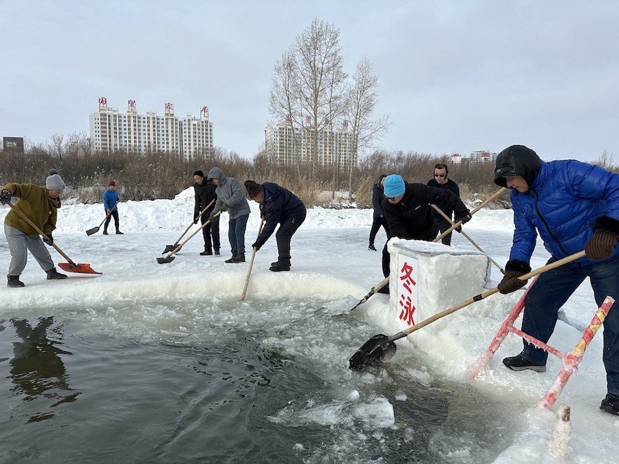 北疆新聞呼倫貝爾1月14日消息(記者 楊凈毓 李文華)1月中旬的內(nèi)蒙古呼倫貝爾,冰天雪地中,海拉爾冬泳協(xié)會在零下21℃的溫度下,鑿冰冬泳祝福第十四屆全國冬季運動會召開。