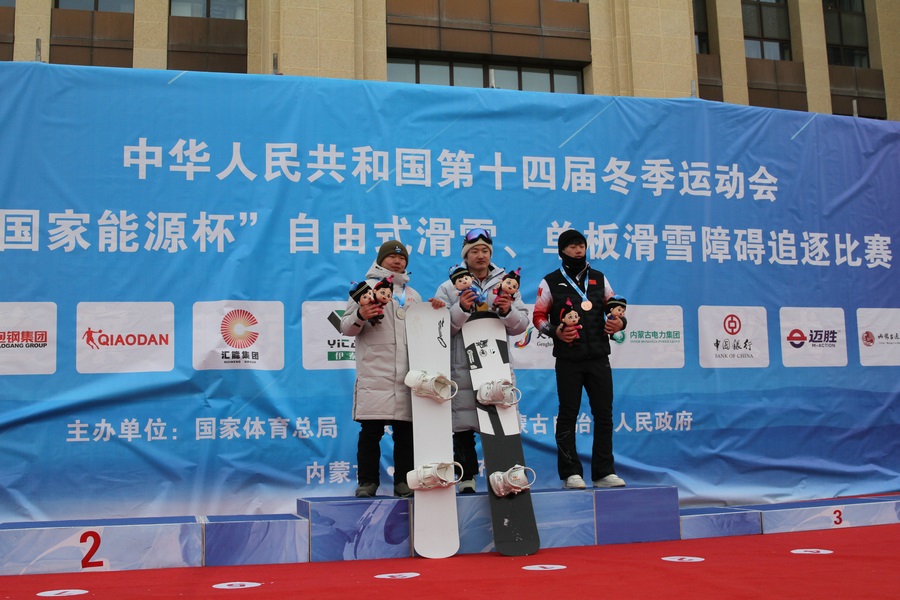 北疆新聞烏蘭察布2月19日電(記者 張楊 王豐)2月19日,第十四屆全國冬季運(yùn)動會單板滑雪公開組男子障礙追逐賽在烏蘭察布涼城滑雪場結(jié)束,吉林隊選手葉康佳率先沖過終點(diǎn)線摘得金牌。這是他在“十四冬”上收獲的首枚金牌。內(nèi)蒙古選手李柯新、山西選手張彬分獲亞、季軍。