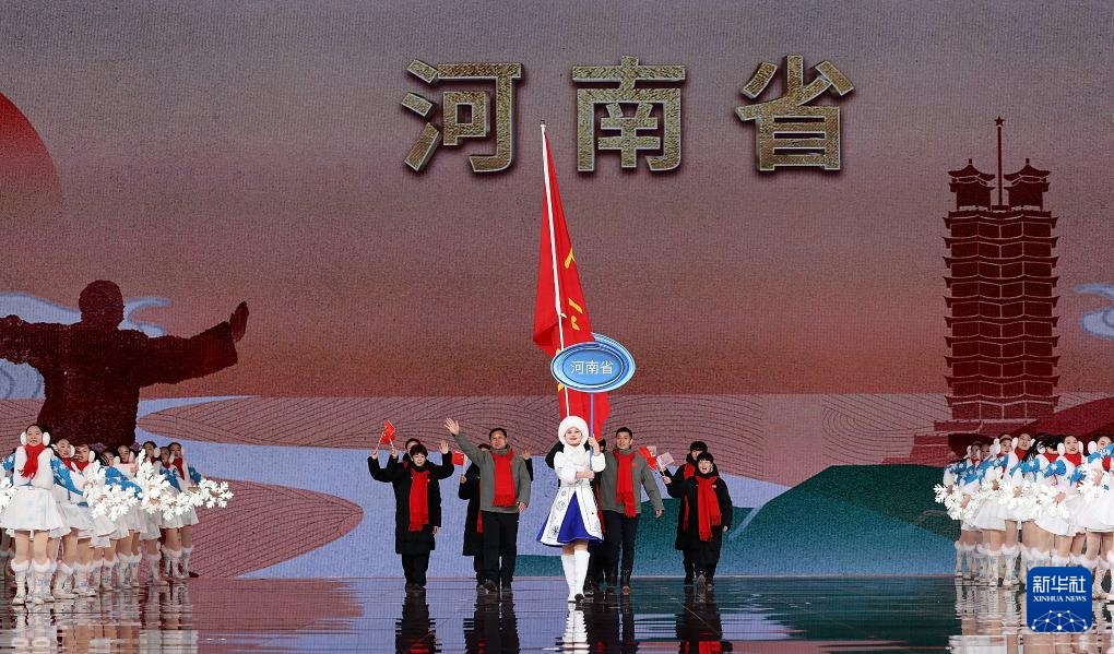 ??2月17日,河南省體育代表團(tuán)在開幕式上入場。新華社記者 李博 攝