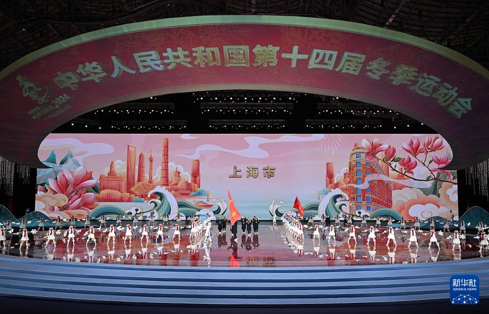 ??2月17日,內(nèi)蒙古自治區(qū)體育代表團(tuán)在開幕式上入場。新華社記者 李欣 攝