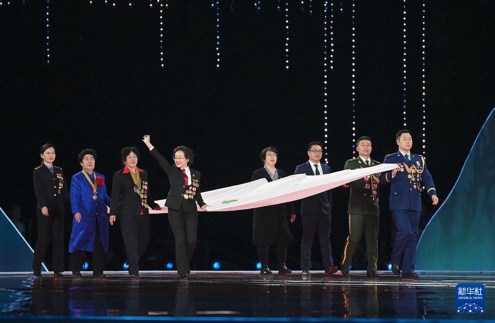 ??2月17日,中華人民共和國第十四屆冬季運(yùn)動會會旗在開幕式上入場。新華社記者 黃偉 攝