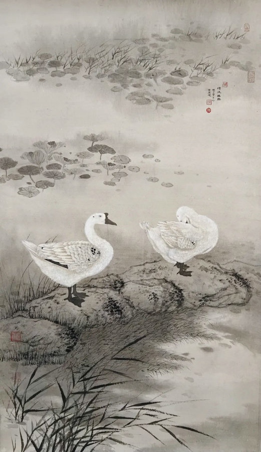 故宮博物院館員、藝術(shù)學(xué)博士后張帥表示,這次參展帶來(lái)《清流鵝除》《安居樂(lè)業(yè)》兩幅作品,作品主要以傳統(tǒng)水墨花鳥畫為主。想表現(xiàn)人與自然和諧的關(guān)系,傳達(dá)一種中國(guó)畫的意境。