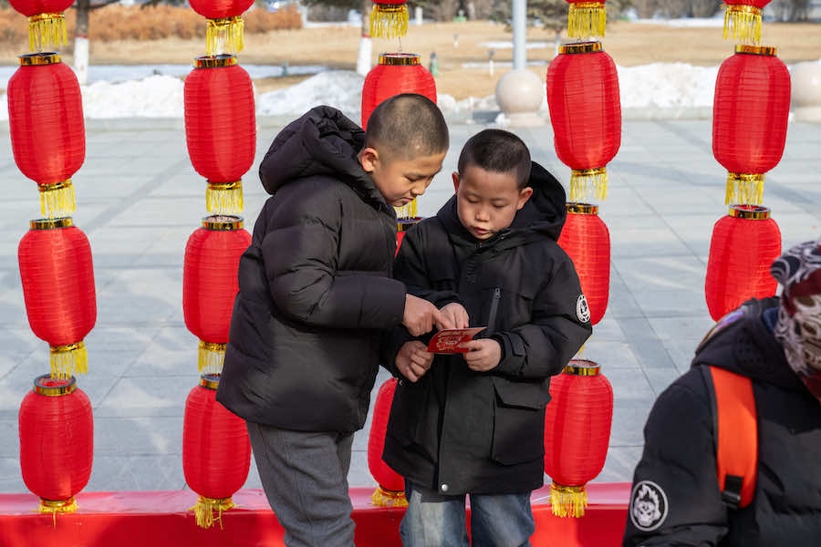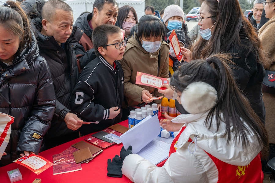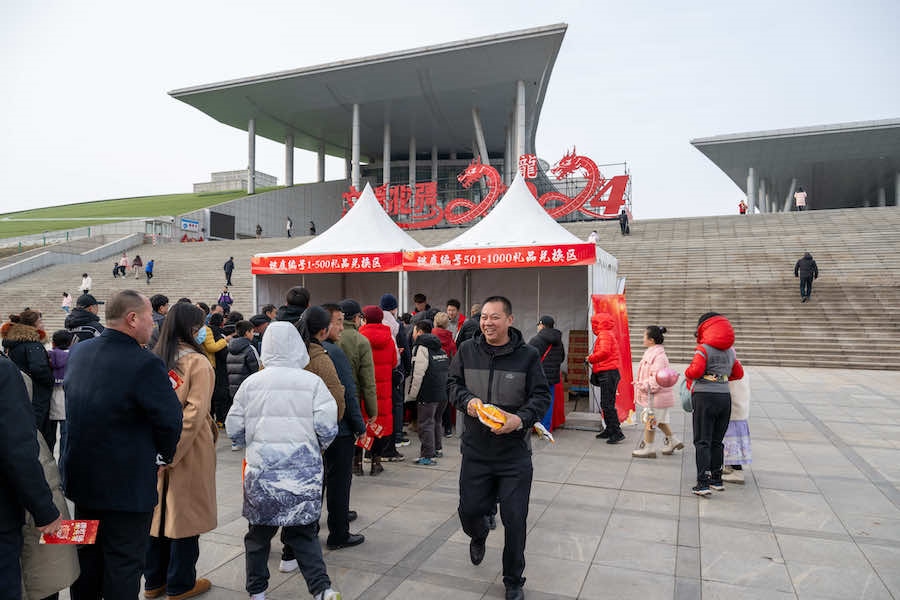 2月23日下午,在內(nèi)蒙古呼和浩特寶鼎廣場(chǎng),市民游客拿著燈謎卡來(lái)到禮品兌換區(qū),興奮不已地排隊(duì)等待著。
