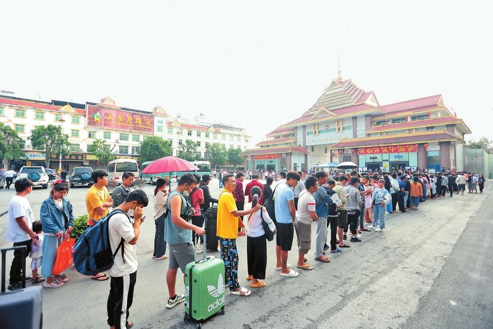 邊民在云南瑞麗口岸排隊(duì)等待通關(guān)。云南日報記者陳飛攝