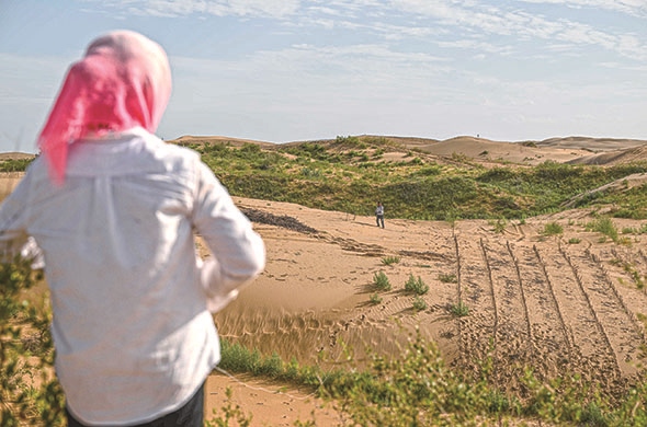 ??治沙戰(zhàn)役開展得更加轟轟烈烈,早在上世紀五六十年代,一場全民參與的防風固沙戰(zhàn)役就在鄂爾多斯大地打響。當?shù)匕傩諑资耆缫蝗?,一到春天就開始設置沙障、種植樹苗,涌現(xiàn)出殷玉珍、吳向東、曹扎娃等一大批治沙勞?!,F(xiàn)在,沙漠大數(shù)據(jù)分析技術(shù)、種質(zhì)資源技術(shù)、無人機飛播技術(shù)等現(xiàn)代治沙科技大大提高了生態(tài)治理水平,更進一步賦能綠色發(fā)展。