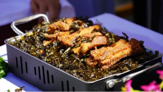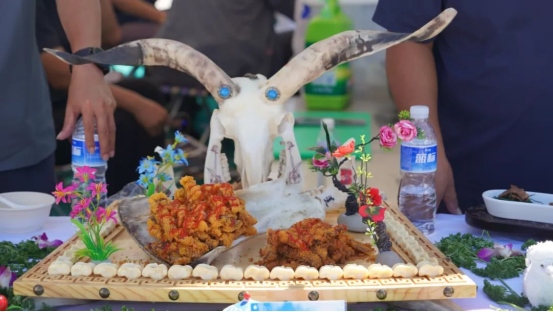 烤全羊、手抓肉、肚包肉……活動現(xiàn)場,參賽選手們各顯神通,用他們精湛的廚藝為大家呈現(xiàn)了一場全羊盛宴。來自不同地區(qū)的36道羊肉系列菜,現(xiàn)場烹飪制作并供嘉賓、游客品嘗,評委從每道菜品的食材、烹飪方法、口味色澤、擺盤設計等方面入手,進行現(xiàn)場打分排名。一道道精心烹飪的美食香飄四座,激發(fā)了現(xiàn)場觀眾的食欲。大家紛紛圍上前來,爭相品嘗?!把蛉膺€有這么多的做法,真是讓人大開眼界?!薄疤贸粤?,羊肉都很鮮美!”現(xiàn)場游客無一不發(fā)出贊嘆。