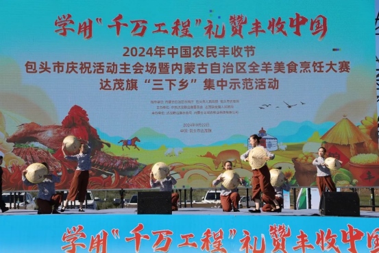 同時,作為2024 年中國農民豐收節(jié)包頭市慶祝活動主會場,廣大農牧民朋友也在達茂旗套馬溝田園綜合體共赴了一場關于土地與希望的“豐收之約”。烏蘭牧騎的歌舞表演;模范代表種植大王盧永旺、養(yǎng)馬能手其木德的經(jīng)驗分享;別開生面的烤全羊開羊儀式 ;新時代農牧民科普宣講;金融助農宣傳;農牧民免費義診;充滿生活氣息的“村趣”運動會,整體活動展現(xiàn)出廣大農牧民的幸福生活和豐富的鄉(xiāng)村文化,贏得了現(xiàn)場觀眾陣陣掌聲和歡呼聲?! ?/p>