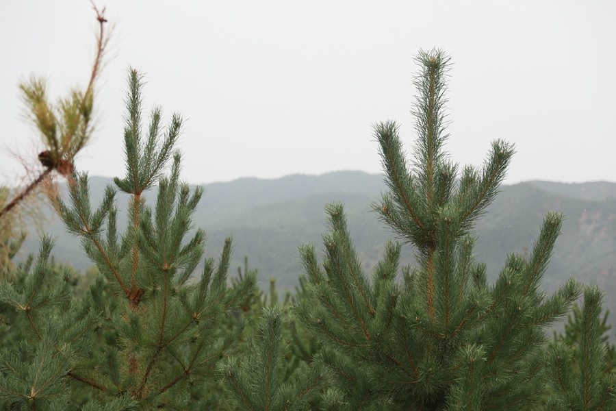空中俯瞰細(xì)雨中的馬鞍山林場(chǎng)