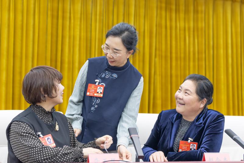 3月7日,全國人大代表胡海娟(左)建議,通過在各級學(xué)校設(shè)立專職家庭教育指導(dǎo)教師等舉措,強(qiáng)化家庭教育指導(dǎo),推動(dòng)家校社協(xié)同育人,促進(jìn)青少年健康成長。記者 于濤 攝