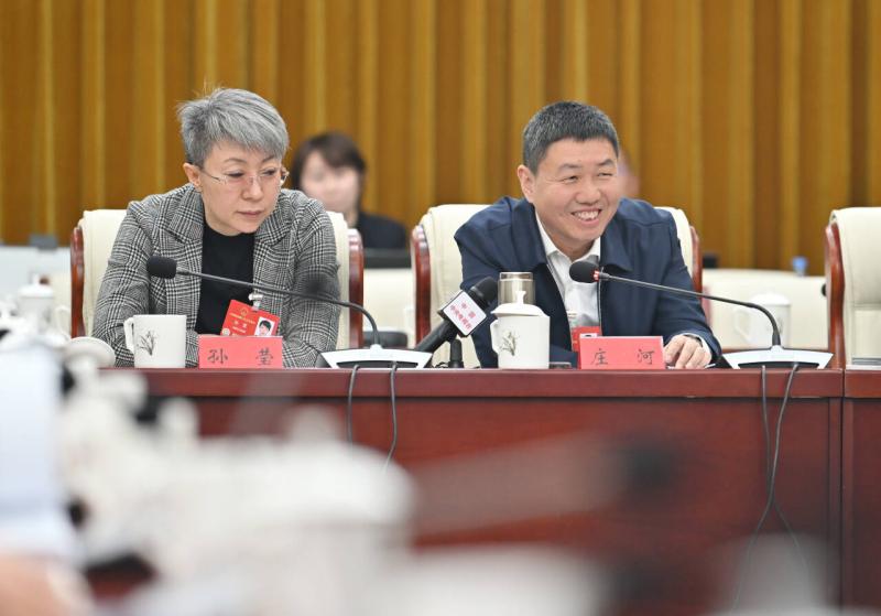 3月7日,全國人大代表莊河(右)說,中國鐵路呼和浩特局集團(tuán)有限公司將積極落實(shí)政府工作報(bào)告的相關(guān)要求,加強(qiáng)鐵路基礎(chǔ)設(shè)施建設(shè),優(yōu)化客運(yùn)產(chǎn)品,實(shí)現(xiàn)多樣供給,大力發(fā)展鐵路現(xiàn)代物流,發(fā)揮好鐵路對推動(dòng)經(jīng)濟(jì)社會(huì)高質(zhì)量發(fā)展的支撐保障作用。記者 馬建兵 攝