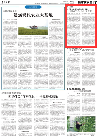 2025年3月29日,《農(nóng)民日報》第7版刊發(fā)題為《呼倫貝爾農(nóng)墾巴彥農(nóng)牧場分公司實驗育良種 選出“生力軍”》的文章,報道了近年來,巴彥農(nóng)牧場分公司始終堅持“科技興農(nóng)”戰(zhàn)略,不斷加大在農(nóng)業(yè)科研方面的投入。農(nóng)業(yè)科技園區(qū)實驗室作為技術創(chuàng)新與應用的前沿陣地,承擔著多項重要的科研任務,在種子培育、土壤改良、病蟲害防治等多個領域開展了深入研究與實踐。