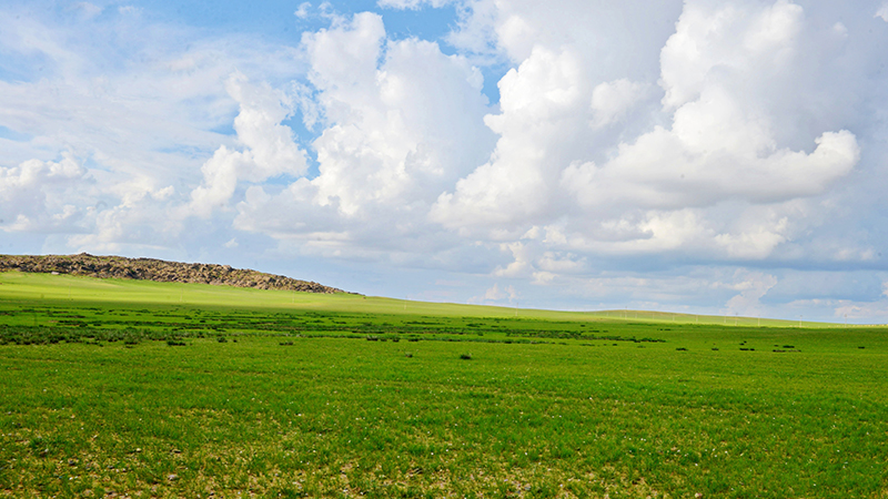 春夏之交,幾場(chǎng)大雨過(guò)后,達(dá)茂草原被洗刷得纖塵不染,一片青綠。