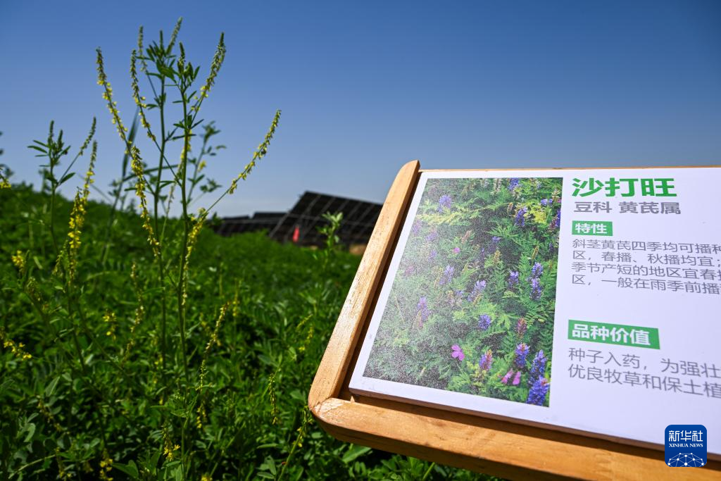 這是在位于巴彥淖爾市臨河區(qū)的國營新華林場防沙治沙和光伏一體化項(xiàng)目拍攝的當(dāng)?shù)胤N植的沙生植物(6月5日攝)新華社記者 連振 攝