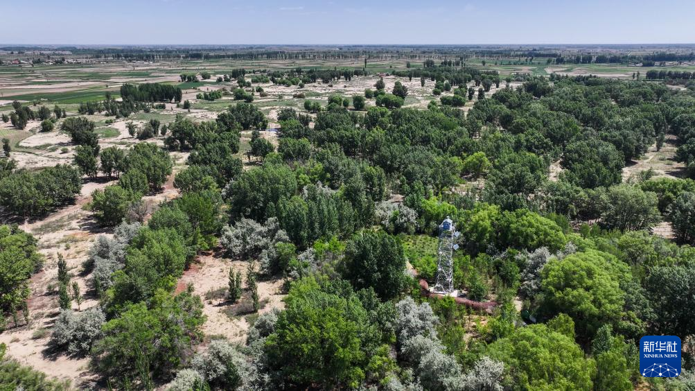 這是6月5日在巴彥淖爾市臨河區(qū)拍攝的郁郁蔥蔥的國營新華林場(無人機(jī)照片)新華社記者 連振 攝