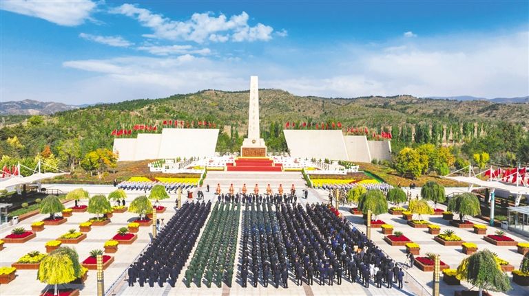 秋高氣爽,松柏蒼翠。烈士紀(jì)念碑廣場莊嚴(yán)肅穆,“人民英雄永垂不朽”八個(gè)金色大字在陽光下熠熠生輝。