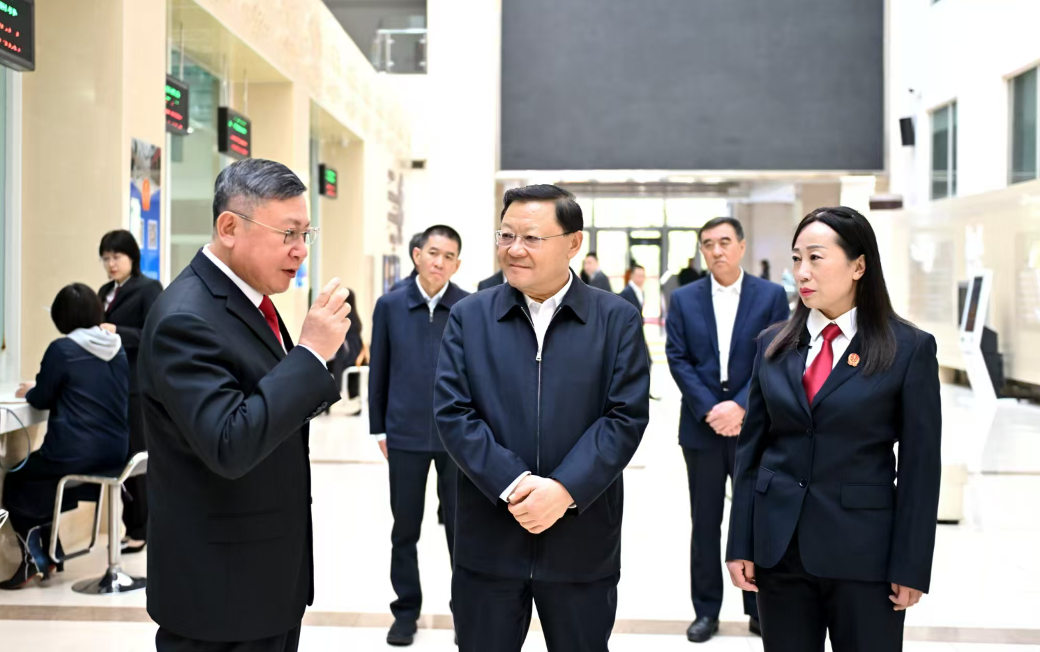 在自治區(qū)高級(jí)人民法院,王偉中先后來(lái)到訴訟服務(wù)大廳、融合法庭,了解多元化解矛盾糾紛、智能輔助審判等情況。他指出,要完善司法為民舉措,提升民商事案件審判水平,確保每一起案件都經(jīng)得起歷史、實(shí)踐和人民的檢驗(yàn)。要緊盯發(fā)展新質(zhì)生產(chǎn)力、優(yōu)化營(yíng)商環(huán)境等領(lǐng)域,持續(xù)強(qiáng)化司法服務(wù),更好發(fā)揮法治固根本、穩(wěn)預(yù)期、利長(zhǎng)遠(yuǎn)作用。