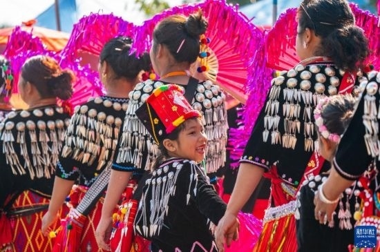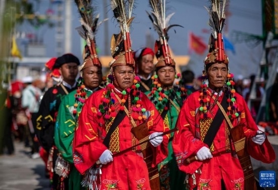 當(dāng)日,云南省德宏傣族景頗族自治州瑞麗市2023年目瑙縱歌節(jié)在位于中緬邊境的勐秀鄉(xiāng)戶瓦山寨開幕。