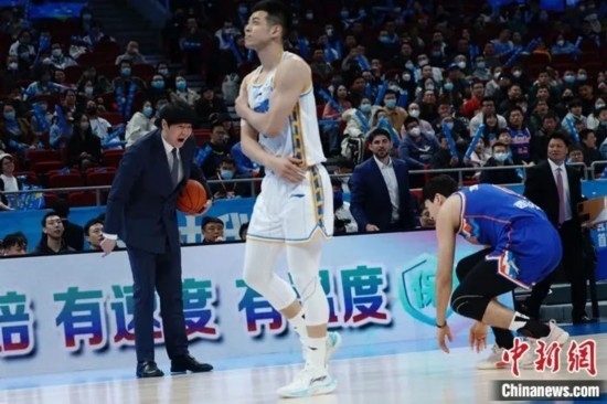 3月17日晚,新疆男籃對(duì)陣北京首鋼。中新社記者 韓海丹 攝