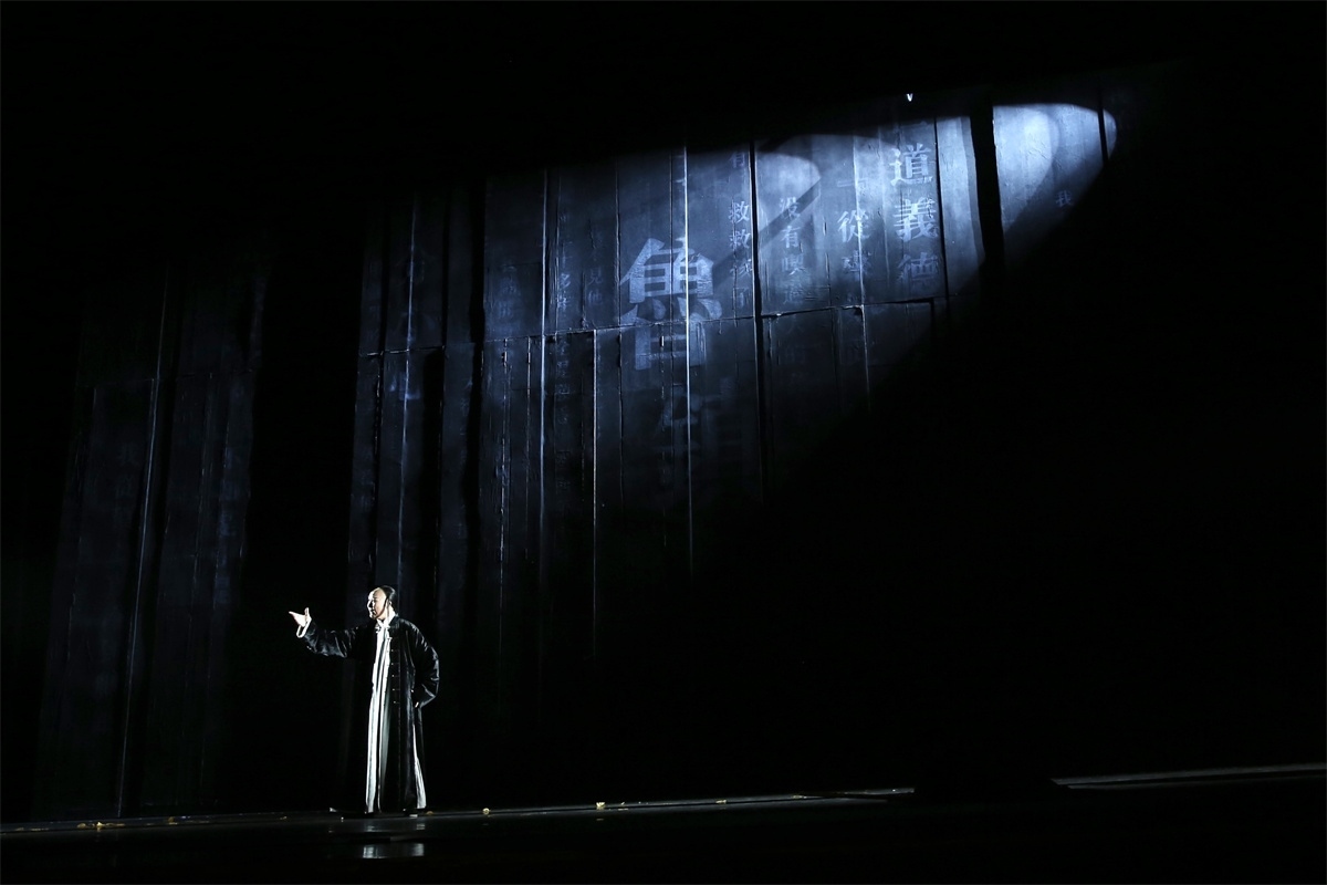 人民網(wǎng)北京5月6日電 (記者劉微)當(dāng)魯迅的《狂人日記》《祝?!贰犊滓壹骸返茸髌窛饪s在一起,熟悉的祥林嫂、阿Q等人物在一個全新的藝術(shù)空間進(jìn)行時空對話是怎樣的場景?5月5日,由河南省曲劇藝術(shù)保護(hù)傳承中心創(chuàng)排的大型原創(chuàng)曲劇《魯鎮(zhèn)》在北京國家大劇院上演。