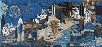 “大國重器”亮點紛呈,脫貧攻堅成就舉世矚目,這些時代新象都在展覽中得到體現(xiàn)。例如,張輝君油畫《蛟龍入?!贰⑸秤绤R版畫《北斗》等作品,折射出我國科技自主創(chuàng)新能力不斷提升??鬃现袊嫛陡瓯跒泛蛣⒃浦袊嫛睹利愢l(xiāng)村》,分別借助植樹造林的人物群像塑造、新農(nóng)村景觀的宏闊描繪,展現(xiàn)了彪炳史冊的人間奇跡。