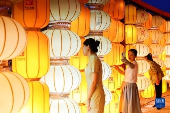 當日,位于甘肅省蘭州市西固區(qū)黃河岸邊的河口古鎮(zhèn)“黃河燈展”正式亮燈。此次燈展以“河口耀千年·絲路映萬古”為主題,各類燈組交相輝映,吸引眾多游客前來游覽。此次燈展將持續(xù)到10月底。燈展活動期間,河口古鎮(zhèn)還將舉辦盛裝巡游等活動,為游客帶來豐富的參觀體驗。