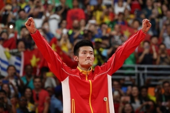 資料圖:2016年8月20日,諶龍在里約奧運會羽毛球男子單打決賽頒獎儀式上。 新華社/歐新中文