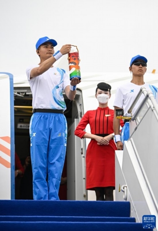 作為大運(yùn)會官方合作伙伴,四川航空承擔(dān)此次火炬?zhèn)鬟f火種航空運(yùn)輸保障任務(wù)。當(dāng)日,“大運(yùn)號”主題彩繪飛機(jī)執(zhí)行此次任務(wù),并由“中國民航英雄機(jī)長”劉傳健負(fù)責(zé)執(zhí)飛本次航班。在火種護(hù)衛(wèi)隊21名隊員的護(hù)送下,火種飛赴火炬?zhèn)鬟f首站城市——北京。從6月10日到7月28日,大運(yùn)火炬將承載著大運(yùn)精神,奏響“奮斗青春 放飛夢想”的成都大運(yùn)會序章。