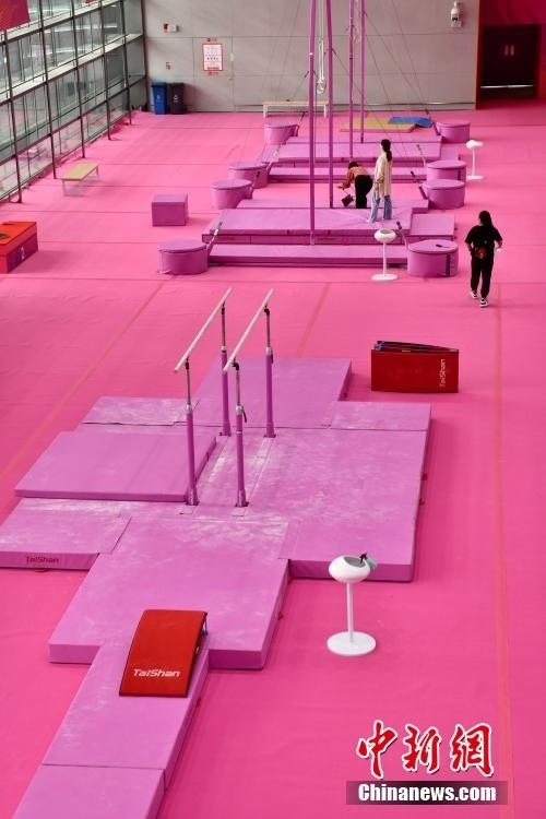 7月14日,成都東安湖體育公園內(nèi),成都大運(yùn)會(huì)體操比賽訓(xùn)練場(chǎng)的粉色布置吸引媒體記者探訪。海綿墊、平衡木、吊環(huán)、鞍馬等設(shè)施均為粉色,充滿青春活力,令人倍感放松。目之所及,海綿墊、平衡木、吊環(huán)、鞍馬等設(shè)施均為粉色。