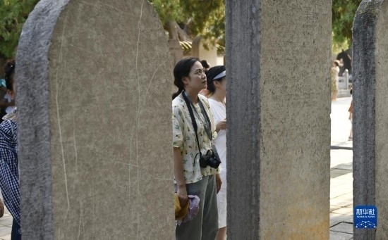 8月7日,游人在嵩陽(yáng)書(shū)院內(nèi)參觀“大唐嵩陽(yáng)觀紀(jì)圣德感應(yīng)之頌碑”。