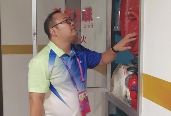 王偉亮駐點(diǎn)在杭州黃龍?bào)w育中心體育場(chǎng),根據(jù)足球賽開賽時(shí)間的特點(diǎn),他一般是下午17:30以前到崗,先是對(duì)黃龍?bào)w育中心體育場(chǎng)開展賽前風(fēng)險(xiǎn)查勘,沿著場(chǎng)館外圍觀眾通行通道對(duì)消防設(shè)施、排水設(shè)施、通風(fēng)設(shè)施、觀眾席出入口、無障礙通行設(shè)施以及懸空固定設(shè)施逐一進(jìn)行檢查,進(jìn)行風(fēng)險(xiǎn)排除。在賽中和賽后,他也要持續(xù)巡場(chǎng),對(duì)因觀眾進(jìn)場(chǎng)導(dǎo)致發(fā)生的新的風(fēng)險(xiǎn)情況予以反饋和處置,真正結(jié)束工作已經(jīng)要到凌晨0:30左右。如今亞運(yùn)已經(jīng)開幕,多場(chǎng)比賽均達(dá)到場(chǎng)館的最大負(fù)荷,王偉亮長(zhǎng)期處于精神高度集中、體力臨近上限的狀態(tài)。但是他沒有絲毫松懈,遇到突發(fā)情況時(shí),依舊會(huì)第一個(gè)沖上去提供幫助。