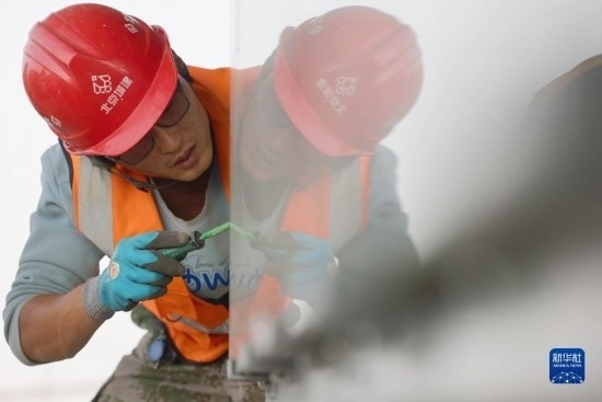 工人在雄安體育中心體育場(chǎng)施工(10月24日攝)。