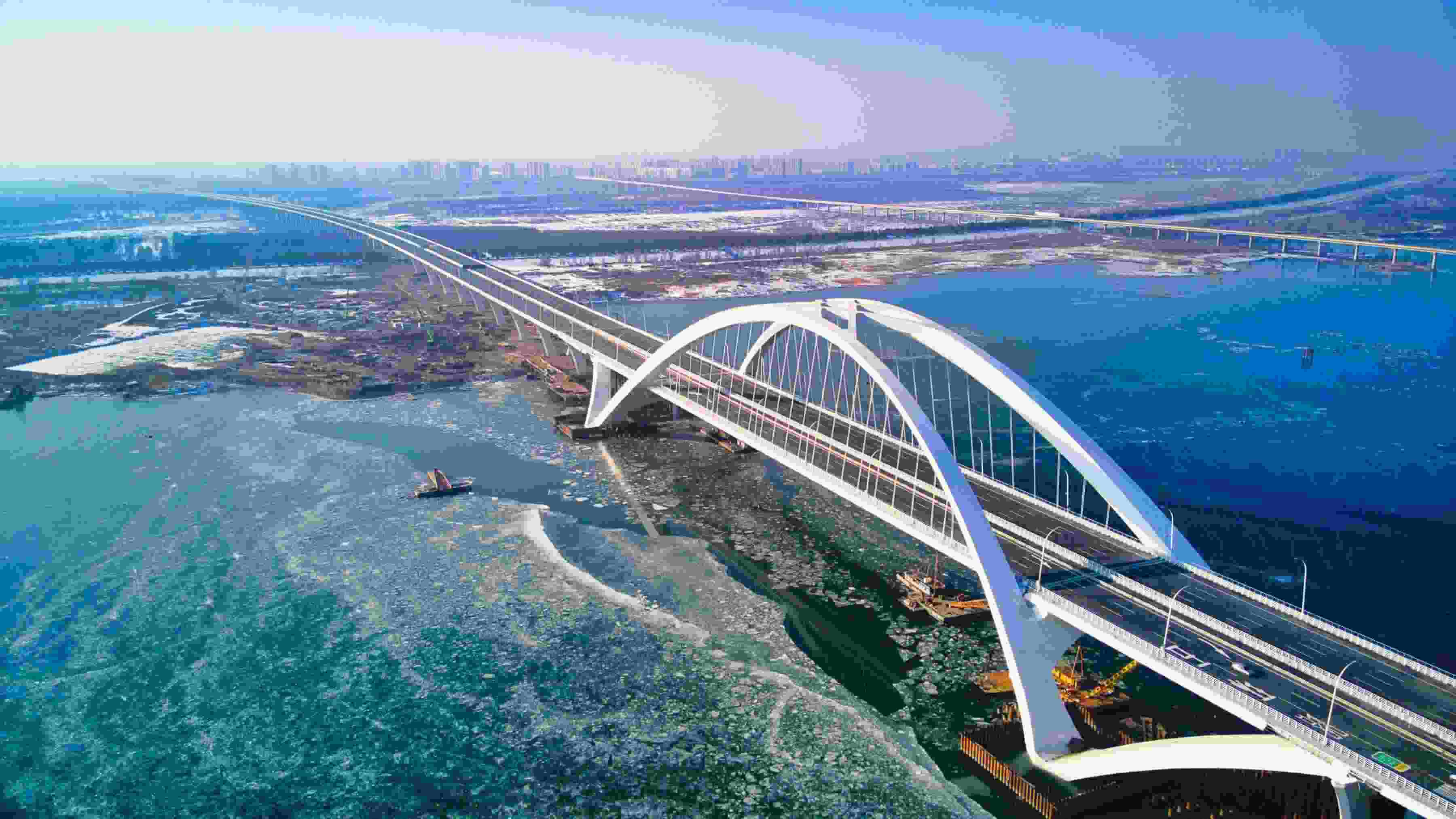 作為京雄高速全線重難點(diǎn)和控制性工程,京雄大橋已于2023年6月17日實(shí)現(xiàn)合龍,刷新北京橋梁?jiǎn)慰缈缍燃o(jì)錄。橋梁采用飛燕式拱橋結(jié)構(gòu),拱頂以“中國(guó)結(jié)”造型的風(fēng)撐連接,寓意北京與雄安兩座城市緊密聯(lián)系、協(xié)同發(fā)展。