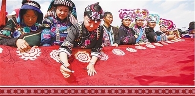 就在2023年的第四屆長(zhǎng)三角國(guó)際文化產(chǎn)業(yè)博覽會(huì)上,李濟(jì)雁和其他21位來(lái)自永仁的彝族繡娘現(xiàn)場(chǎng)哼著歌、唱著曲,穿針引線、展示刺繡絕活,成為展會(huì)上的亮麗風(fēng)景。